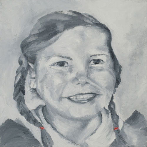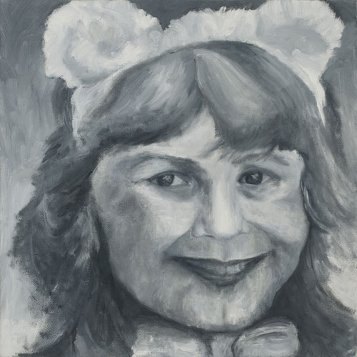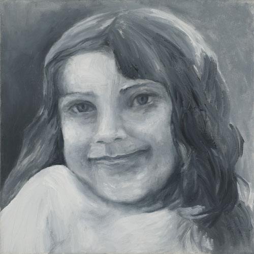 A Miss Piggy clock is an undusted keepsake kept close by in my studio. It belonged to my daughter Marci. In 2009 the clock provoked a search for past photographs of her. Thirty three years prior she was killed in a tragic car accident at the age of four. It was profound to see how faded the images had become. Recalling those poignant moments from a precious life so long ago buried was difficult and cathartic. This series renewed a narrative about grace, loss, forgiveness, and elements of the human condition. Revisiting these photographs was the impetus to a fresh and deeper understanding of my love for portraiture. In painting the portrait, through every stare, line, gesture, and shadow, the weight of life persists.